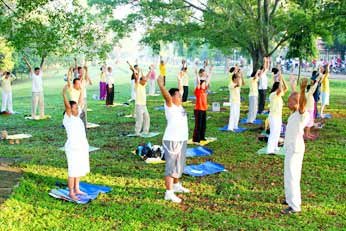 Local groups gather for cultural performances and team-building activities in the open-air amphitheater.